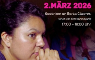 Vor 10 Jahren wurde Berta Cáceres, Menschenrechts- und Umweltverteidigerin, indigene Aktivistin, Feministin, in ihrem Haus in La Esperanza in Honduras ermordet. Der politische Femizid folgte einem Mordkomplott zugunsten von Wirtschaftsinteressen, dessen Auftraggeber bis heute nicht zur Rechenschaft gezogen wurden. Staatliche Stellen wussten im Voraus von dem Plan, taten aber nichts, um Berta zu schützen. An ihrem 10.Todestag wollen wir gemeinsam Berta Cáceres gedenken sowie vollständige Aufklärung und Gerechtigkeit fordern. Dazu gehört auch die Anerkennung territorialer Rechte indigener Gemeinschaften. Wir protestieren gegen die fortdauernde Kriminalisierung, Bedrohung und Ermordung von Menschenrechtsverteidiger*innen in Honduras und ganz Lateinamerika.