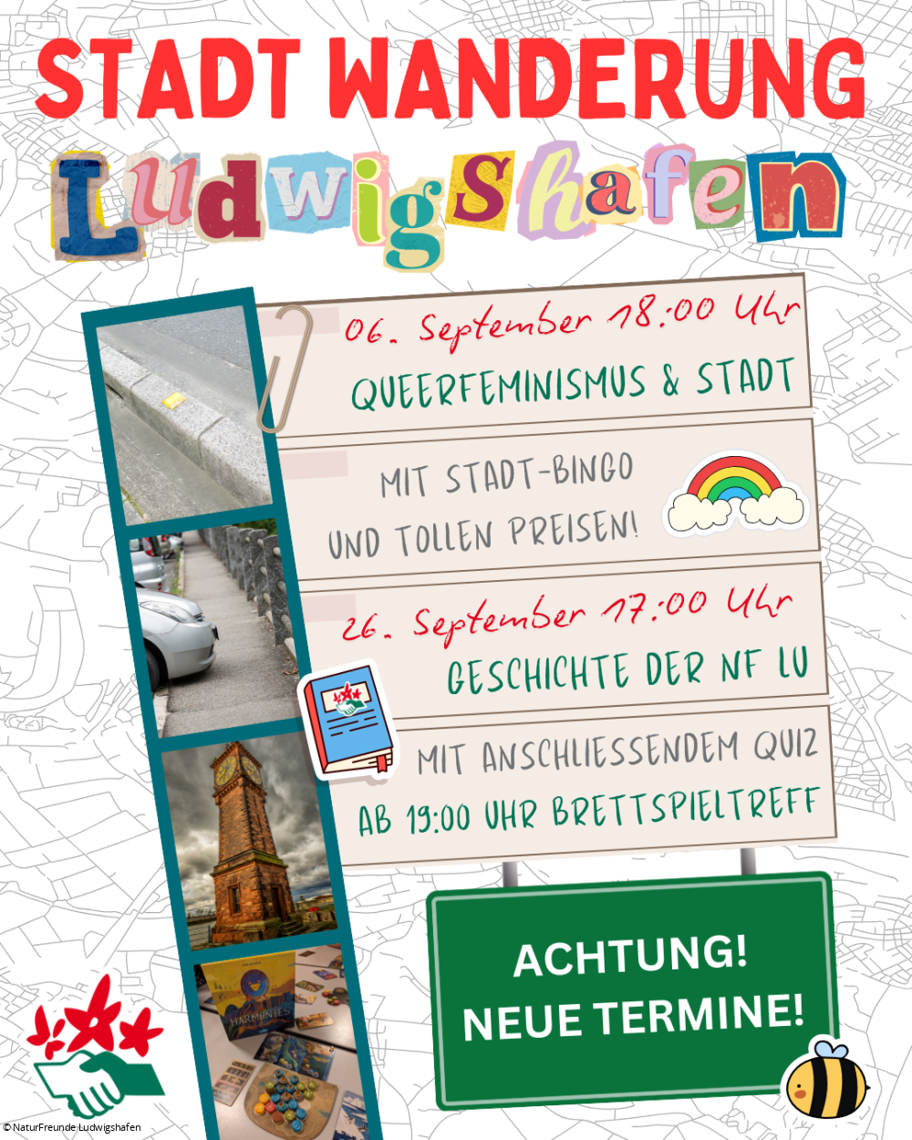 Es wird ein Stadtbingo geben und im Anschluss laden wir euch herzlich zum Verweilen bei alkoholfreien Getränken im Hackgarten ein!